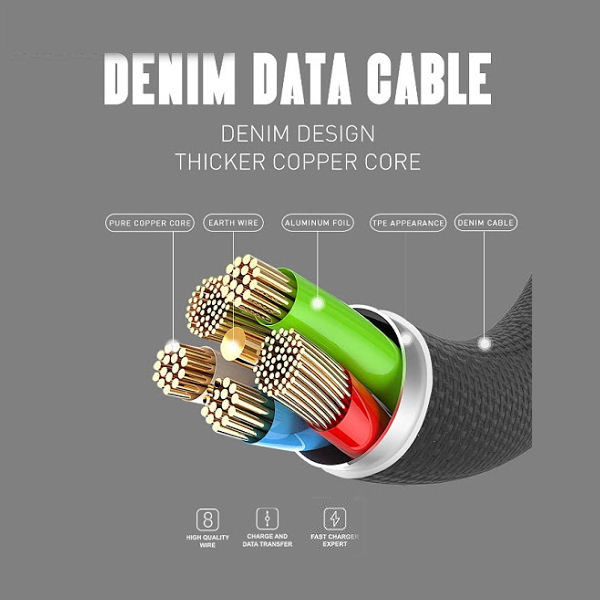 مناسب برای شارژ و انتقال اطلاعات شدتجریان عبوری: 2.4 آمپر مقاوم در برابر گرهخوردن و در هم پیچیدن دارای روکش کنفی کابل تشکیل شده از چند سیم داخلی جهت کاهش مقاومت درونی