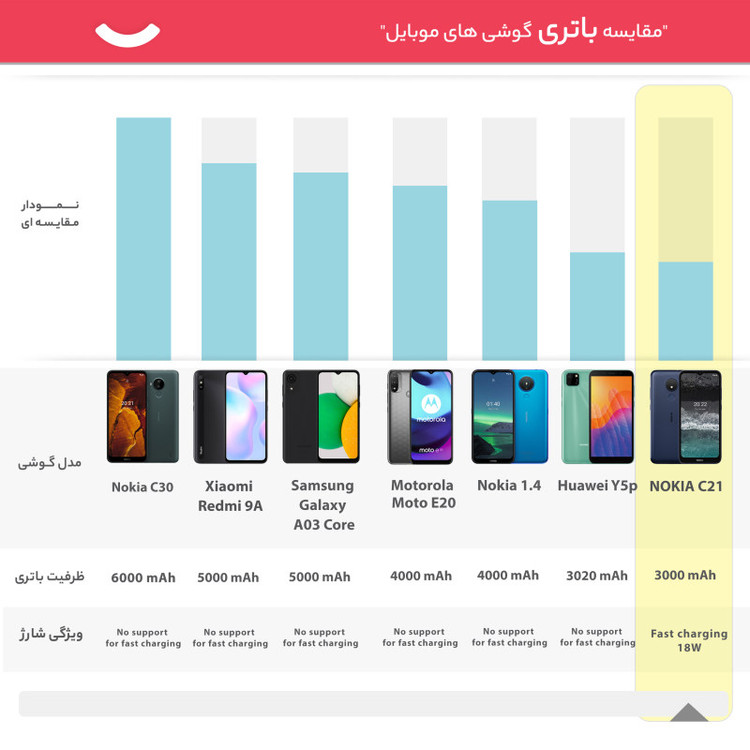 مشخصات باتری : باتری لیتیوم-یون با میزان ظرفیت 3000 میلیآمپرساعت