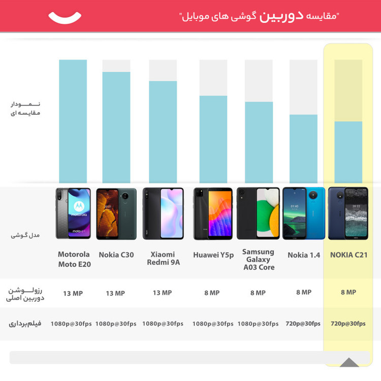 فیلمبرداری : رزولوشن 720×1280 پیکسل و سرعت 30 فریم در ثانیه (720p@30fps)