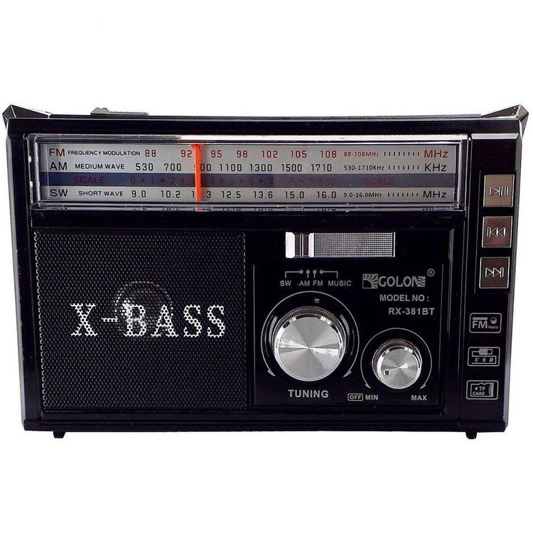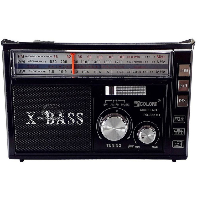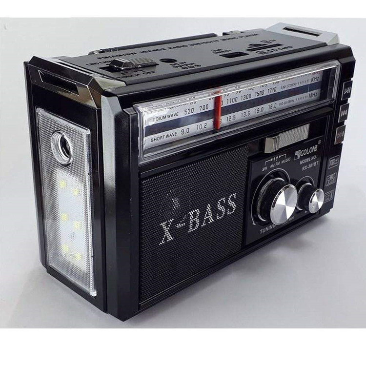 یکی از معروفترین شرکتهای تولیدکننده رادیو و اسپیکر در دنیا شرکت GOLON است. محصولات این شرکت به بیش از 100 کشور دنیا صادر میشود .از ویژگیهای این شرکت میتوان به طراحی و کیفیت بالای محصولات این شرکت اشاره کرد.این رادیو قابلیت دریافت تمام فرکانسهای رادیویی(FM,AM,SW) و همچنین پخش موسیقی از طریقUSB,SD,TF طراحیشده است و کیفیت صدای بالایی دارد. رادیو اسپیکر Golon RX-381BT مجهز به فناوری بلوتوث است. از مزایای آن میتوان به آنتن تلسکوپی، چراغقوه، بلوتوث و طراحی زیبای آن اشاره کرد. این رادیو دارای باتری شارژی بوده که قابلیت استفاده به صورت سیار و بدون نیاز به برق در مواقع اضطراری را دارد .همچنین این اسپیکر قابلیت استفاده با باتری و همچنین اتصال مستقیم به برق شهری را دارا است.