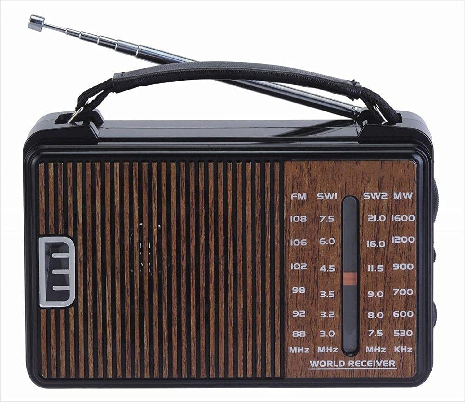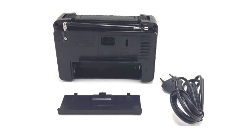 این رادیو فاقد باتری ، بلوتوث ، درگاه USB ,SD می باشد . و فقط رادیو با برق مستقیم کار میکند . همراه رادیو یک کابل 2شیاره که درب پشتی است قرار گرفته روشن میشود . جایگاه باتری بزرگ UM1 نیز دارد .