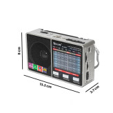 رادیو Golon RX-8866 از رادیو های کوچکی است که به خاطر ابعادش شما قادر به جابجایی راحت تر آن هم هستید. بندی که در گوشه ی آن قرار داده شده، شما را قادر به آسان تر جابجا کردن رادیو می کند. می توانید بند را دور مچ خود قرار دهید و رادیو را همراه خود داشته باشید. شاید این گونه از رادیو ها را بیشتر در مغازه ها و خانه های قدیمی دیده باشید که در حال پخش رادیو هستند. اما شما می توانید با استفاده از Golon 8866BT ، به غیر از گوش دادن به موج های رادیویی ، به موسیقی هم گوش دهید. این محصول دارای پورت های TF و USB می باشد که بدین ترتیب به شما امکان گوش دادن موسیقی را از Micro SD و فلش مموری می دهد. افزون بر پورت های نام برده شده، شما همچنین می توانید با اتصال بلوتوث دستگاه های مختلف خود مثل گوشی ، لپتاپ و…، به این رادیو ، از این طریق هم به گوش دادن موسیقی بپردازید. Golon RX-8866 توانایی پشتیبانی از موج های FM / AM / SW1-6 را دارد و با صفحه ی تنظیم موجی که که دارد شما را از موج و فرکانسی که استفاده می کنید، مطلع می سازد. برای دریافت قوی تر فرکانس ها، پشت این محصول آنتنی قرار داده شده است که به این روند کمک بیشتری می کند. در RX-8866 کلید های کنترل موسیقی و تنظیم رادیو ، در کنار و بالای بدنه قرار گرفته اند. همچنین کلیدی برای روشن و خاموش کردن چراغ قرار داده شده روی رادیو ، در بالای آن تعبیه شده تا در مواقع لزوم، از نور آن استفاده کنید. علاوه بر تأمین انرژی Golon RX-8866 از برق شهری، شما می توانید از دو نوع باتری BL-5C(نوکیایی) و باتری قلمی شارژی به طور جداگانه هم بهره ببرید و با کابل MiniUSB که در درون جعبه آن قرار داده شده است، به شارژ این باتری بپردازید.