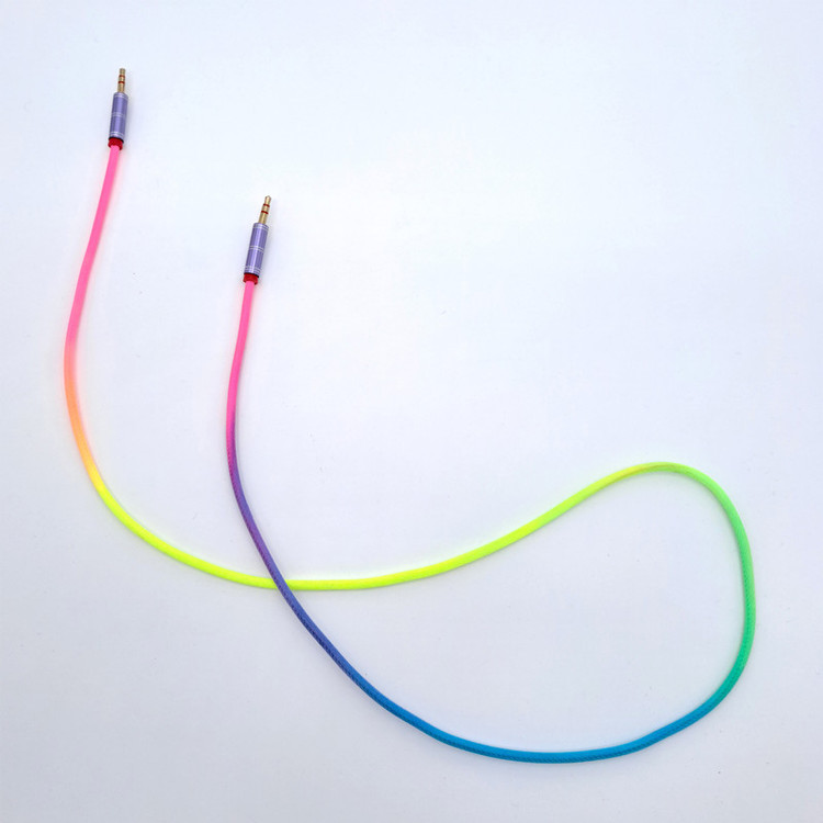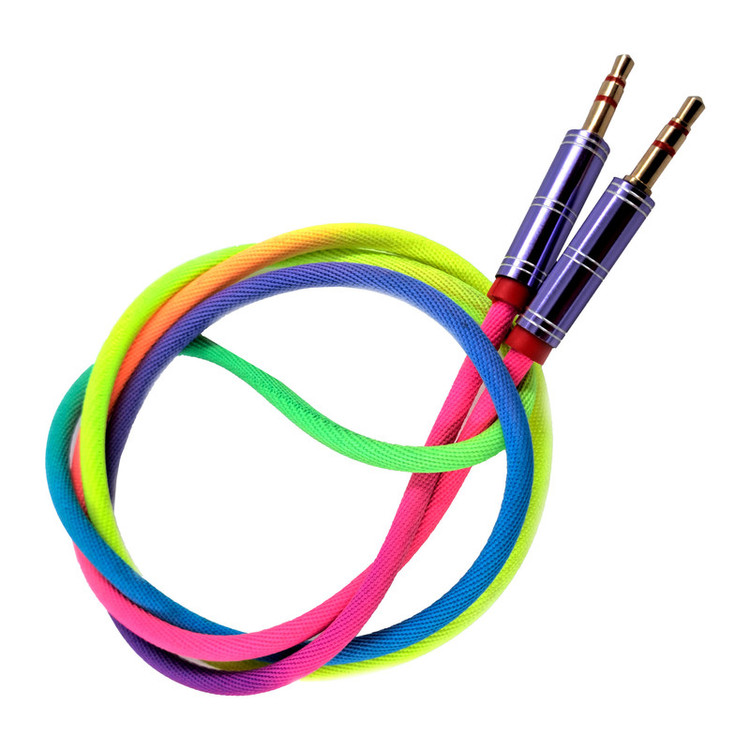 کابل انتقال صدای 3.5 میلیمتری مدل MultiColour که در هر سمت از این کابل یک کانکتور 3.5 میلیمتری قرار گرفته تا صدا را بهآسانی انتقال دهد. این کابل صدا را از گوشی موبایل، تبلت، دستگاه پخش خودرو یا هر دستگاه دیگری که به درگاه 3.5 میلیمتری مجهز است، به بلندگو، اسپیکر یا دیگر دستگاههای پخشکنندهی صدای مجهز به درگاه 3.5 میلیمتری انتقال دهند. بهطور حتم برای شما هم اتفاق افتاده که بخواهید موسیقی موردعلاقهتان که داخل گوشی موبایل یا لپتاپ است را با صدایی رسا و بلندتر گوش دهید. بنابراین باید از یک رابط که بتواند گوشی موبایل را به بلندگو متصل کند استفاده کنید. در این زمان یک کابل AUX به کارتان خواهد آمد. این کابل به شکل رنگین کمانی ( چند رنگ ) ساخته شده و دارای طول حدود 1 متر (93 سانتی متر) و استحکام بالایی نیز دارد . بهسادگی مورد استفاده قرار میگیرد .