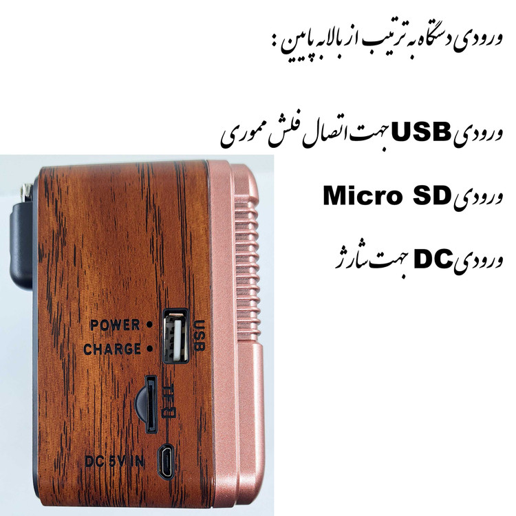 پنل خورشیدی درگاه حافظه USB درگاه کارت حافظه microSD اتصال بلوتوث دریافت امواج رادیویی FM, AM, SW