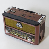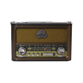 با رویکار آمدن شبکه های مجازی و اینترنت همچنان رادیو طرفداران پرو پا قرص خود را دارد . این دستگاه با طراحی کلاسیک به شکل رادیوهای قدیمی اما با کارکردی امروزی میباشد و توانایی پخش فایل های صوتی با فرمت MP3 را از طریق درگاه های ورودی AUX و USB و 2 پورت کارت حافظه TF/ SDدارد. این رادیوی علاوه بر امکان استفاده از برق شهری با داشتن باتری داخلی قابل شارژ و امکان استفاده از 4 باتری معمولی مدل UM-1 در همه جا میتواند همراه خوبی برای شما باشد . با خرید این محصول کاربردی شما تنها صاحب یک رادیو نگردیده اید بلکه صاحب یک پلیر قوی هم شده اید .با داشتن آنتن تلسکوپی بر روی دستگاه به راحتی میتوانید در هر مکانی به ایستگاه رادیویی دلخواه خود متصل و شنیدن رادیو لذت ببرید . این رادیو باداشتن 3 درگاه ورودی : USB و فلش در دو سایز SD , TF و همچنین اتصال از طریق بلوتوث میتواند یک پلیر کاربردی با صدای عالی برای مسافرت ها و دورهمی های شما باشد . از دیگر امکانات این دستگاه میتوان به بلندگوی با کیفیت استریو و ورودی AUX اشاره نمود .