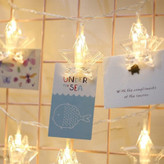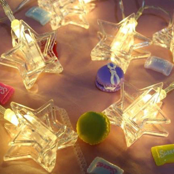 ریسه ال ای دی مدل گیره ستاره کد 20Lamp، دارای گیره های کریستالی طرح ستاره میباشد،که میتوان عکس های یادگاری خود و یا کارت پوستالهای خود را به آن آویزان نمایید.اگر شما هم قصد تزئین تولد و یا تغییر دکوراسیون اتاق خود را دارید این ریسه گزینه بسیار مناسبی برای شما میباشد و در تاریکی شب با روشن کردن آن خاطرات شیرین که در تصاویرتان برای شما تداعی خواهد شد خواب دلچسب تری را به چشمانتان هدیه میکند. این ریسه شامل 20 عدد گیره با شکل ستاره ای و نور آن به صورت ثابت و فاقد کنترلر می باشد. این ریسه با برق شهری 220 ولت روشن و طول آن 4.5 متر می شود .