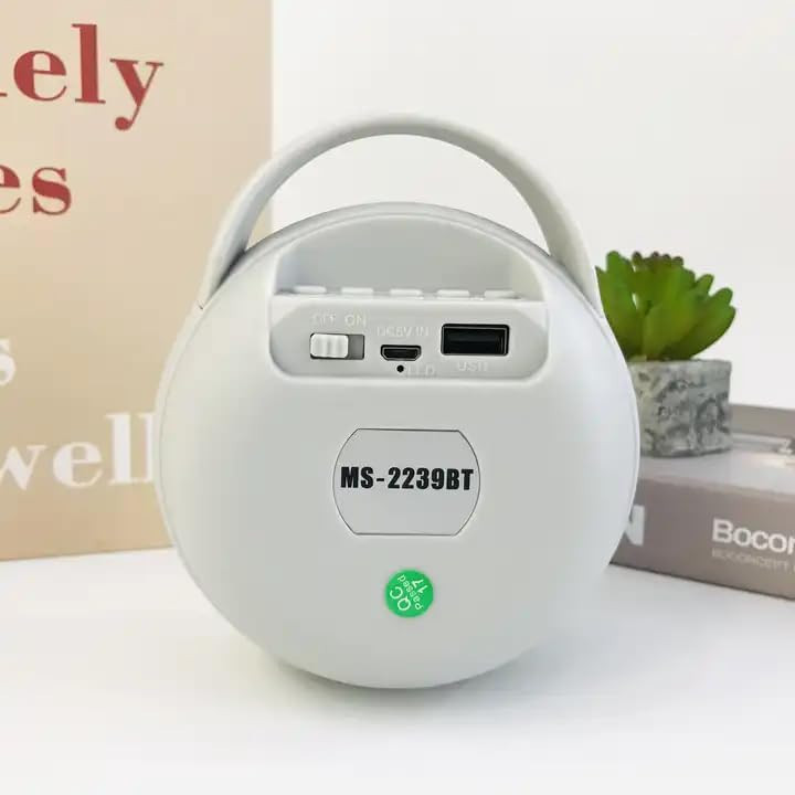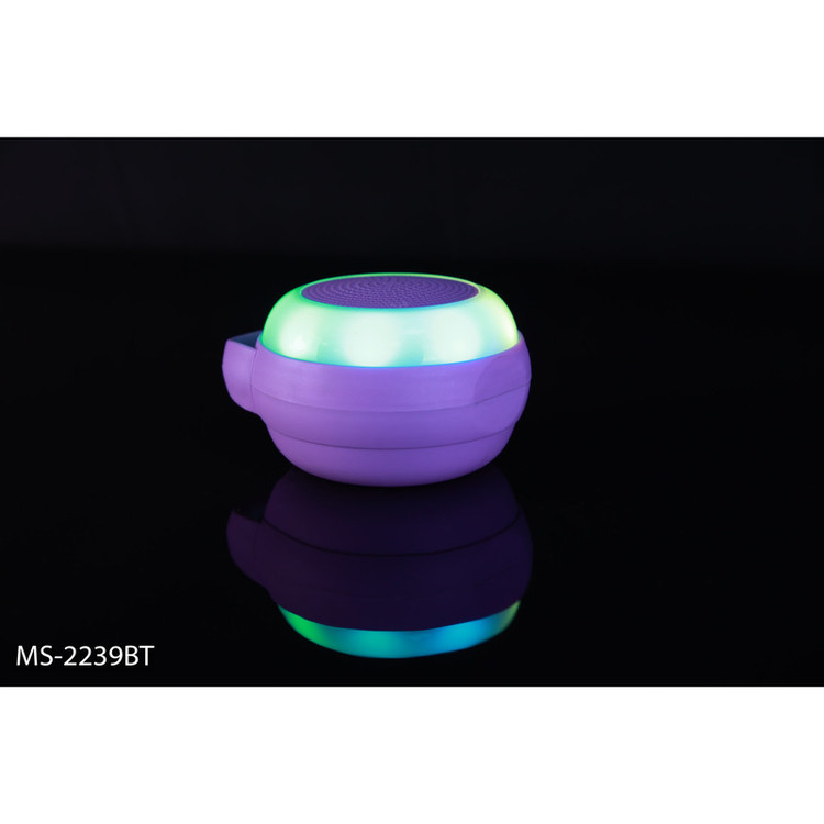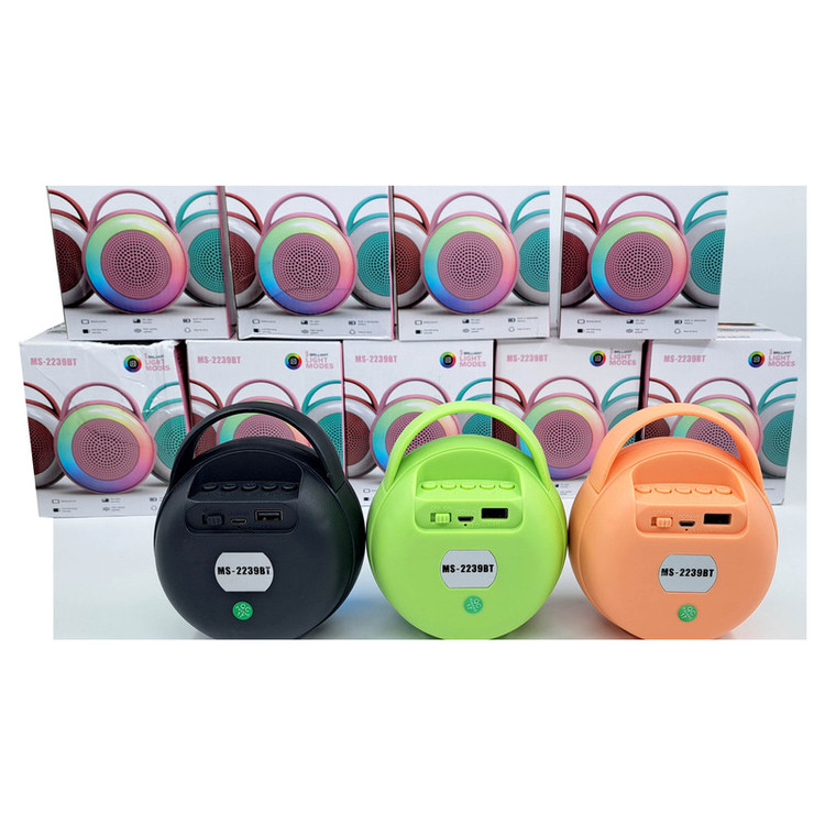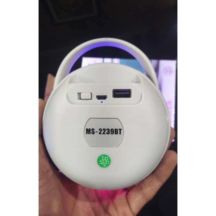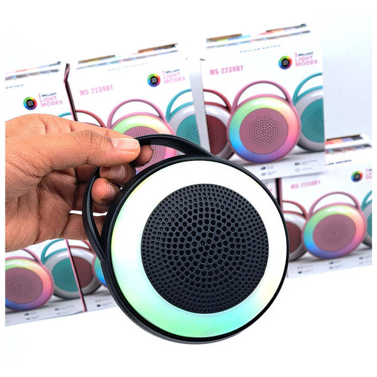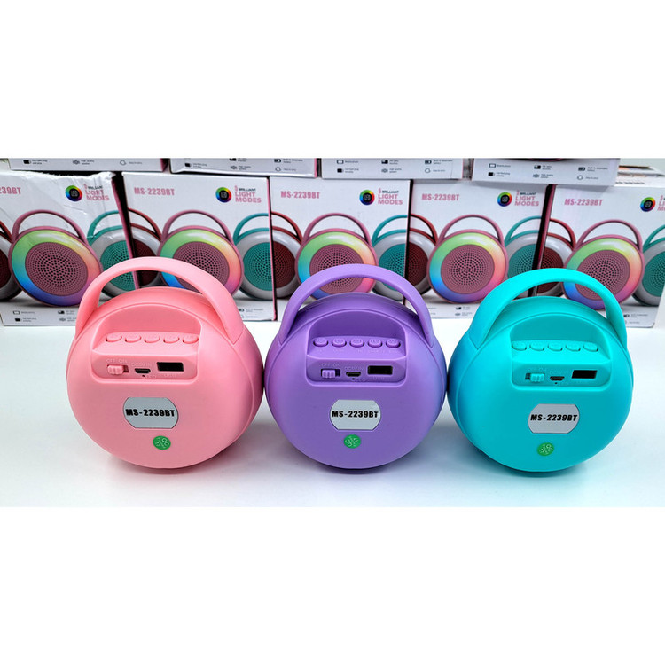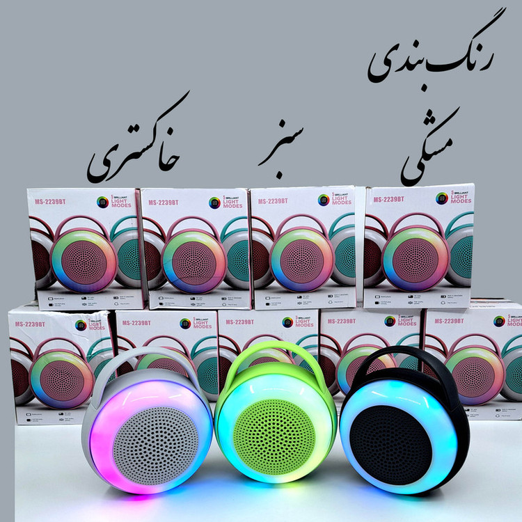 اسپیکر بلوتوثی قابل حمل مدل MS-2239BT با توجه به ابعاد و وزن مناسب خود میتواند در هر جایی لذت گوش دادن به موسیقی را برای کاربران فراهم کند. این اسپیکر همراه، دارای درایو و نورپردازی RGB است تا این اسپیکر بتواند صدا را به صورت مستقیم و با بیشترین کیفیت به گوش کاربران برساند و جلوههای بصری بسیار زیبایی به آنها ارائه کند. پورتهای اتصال این اسپیکر در قسمت پشتی آن قرار دارند و به هیچ عنوان زیبایی قسمت جلویی این محصول را دچار اختلال نمیکنند. کلیدهای کنترل موسیقی و صدا هم در قسمت بالا و پشت اسپیکر بلوتوثی MS-2239BT قرار دارند و دسترسی به آنها کار دشواری به نظر نمیرسد. درایو اصلی MS-2239BT قابلیت ارائه توان خروجی حداکثر 5 وات را در بازه فرکانسی 100 هرتز الی 20 کیلوهرتز ارائه میکند تا بلندی و شفافیت صدای نسبتا مناسبی را هنگام گوش دادن به موسیقی از این اسپیکر شاهد باشیم. اتصالات اسپیکر به حافظه جانبی و دستگاهها توسط پورتهای USB،انجام میشود. امکان اتصال بدون سیم نیز توسط بلوتوث داخلی MS-2239BT وجود دارد و کاربران به سادگی میتوانند تلفن همراه، تبلت و دیگر دستگاههای بلوتوثی خود را به سادگی با این اسپیکر همگامسازی کنند. تامین انرژی این اسپیکر نیز برعهده باتری 1200 میلیآمپر ساعتی است که از شارژدهی مناسبی نسبت به بلندی صدا برخوردار است.سایز این اسپیکر 2 اینچ با ابعاد 14x12x7 سانتی متر می باشد که آن را برای حمل ، آسان تر کرده است .