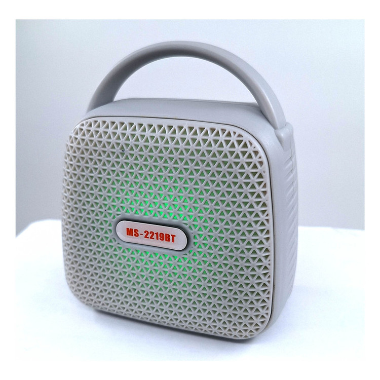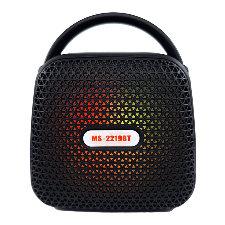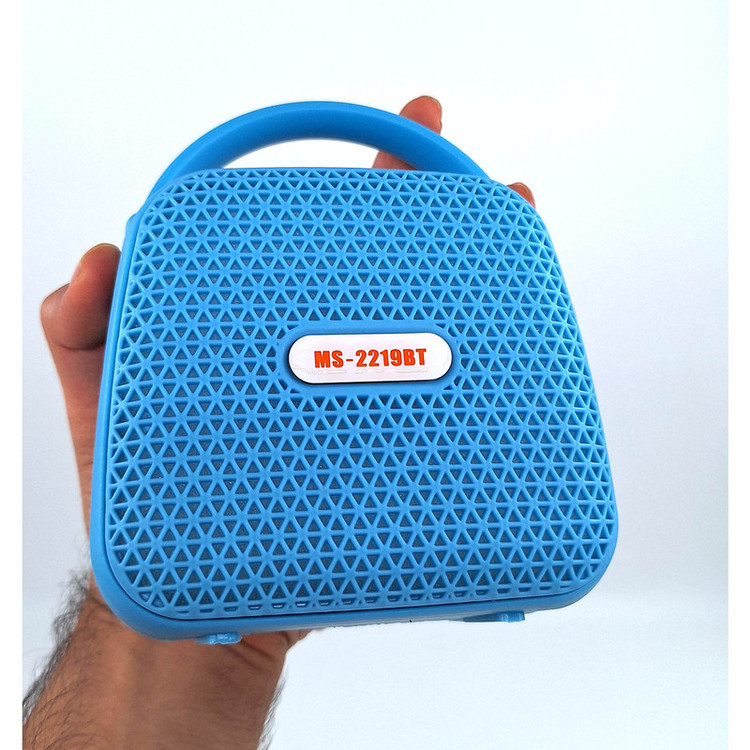 اسپیکر بلوتوثی قابل حمل مدل MS-2219BT با توجه به ابعاد و وزن مناسب خود میتواند در هر جایی لذت گوش دادن به موسیقی را برای کاربران فراهم کند. پورتهای اتصال این اسپیکر در قسمت پشتی آن قرار دارند و به هیچ عنوان زیبایی قسمت جلویی این محصول را دچار اختلال نمیکنند. کلیدهای کنترل موسیقی و صدا هم در قسمت بالا و پشت اسپیکر بلوتوثی MS-2219BT قرار دارند و دسترسی به آنها کار دشواری به نظر نمیرسد. درایو اصلی MS-2219BT قابلیت ارائه توان خروجی حداکثر 5 وات ارائه میکند تا بلندی و شفافیت صدای نسبتا مناسبی را هنگام گوش دادن به موسیقی از این اسپیکر شاهد باشیم. اتصالات اسپیکر به حافظه جانبی و دستگاهها توسط پورتهای USB،انجام میشود. امکان اتصال بدون سیم نیز توسط بلوتوث داخلی MS-2219BT وجود دارد و کاربران به سادگی میتوانند تلفن همراه، تبلت و دیگر دستگاههای بلوتوثی خود را به سادگی با این اسپیکر همگامسازی کنند. این اسپیکر دارای رادیو FM می باشد که از طریق کلید Mode می توانید از آن استفاده کنید. تامین انرژی این اسپیکر نیز برعهده باتری شارژی لیتیومی است که از شارژدهی مناسبی نسبت به بلندی صدا برخوردار است.سایز این اسپیکر 5 اینچ با ابعاد 13x11x7سانتی متر می باشد که آن را برای حمل ، آسان تر کرده است . این اسپیکر دارای دستگیره می باشد که میتوانید به راحتی آن را به کیف یا کوله ی خود آویز کنید. این اسپیکر در رنگ بندی متنوع تولید شده که میتواند تمامی سلیقه ها را به خود جلب کند .