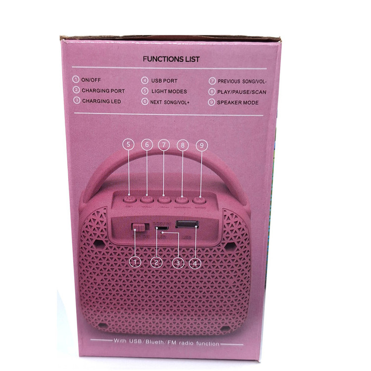 - دارای رادیو FM - دارای بلوتوث - دارای ورودی USB جهت اتصال فلش مموری - خروجی صدای 5 وات - باتری شارژی لیتیومی - رقص نور با قابلیت تغییر حالت رقص نور و خاموش و روشن کردن