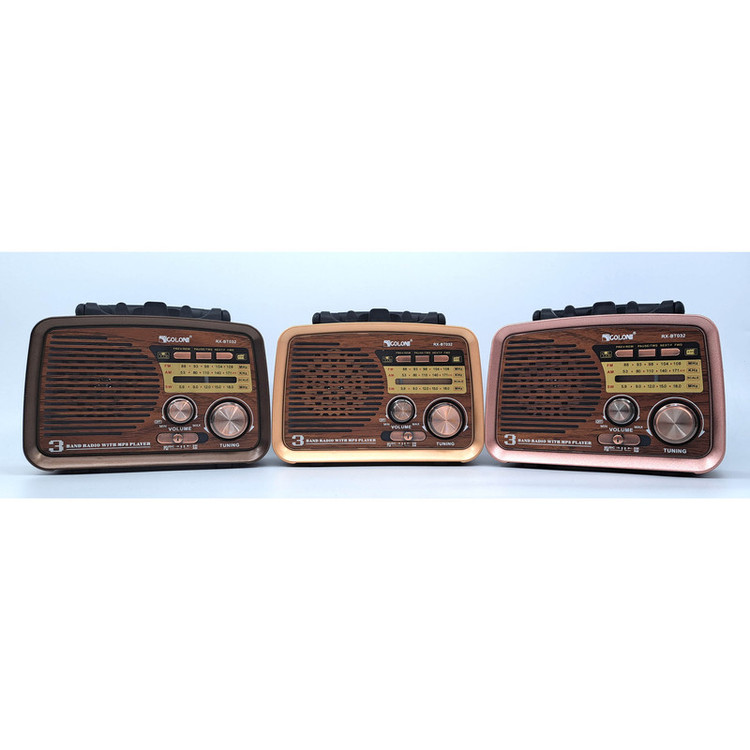 با وجود پیشرفت تکنولوژی باز هم رادیو طرفداران خاص خودش را دارد. رادیو بلوتوثی RX-BT032 زیبا و جذاب با امکانات پیشرفته امروزی با طرح نوستالژیک خود به صورت رادیو های قدیمی، یادآور خاطرات بسیار شیرینی است. در این دستگاه نمایشگر تنظیم ایستگاه رادیویی مانند نسل رادیوهای قدیمی طراحی شده است . این گیرنده امواج رادیویی FM، AM و SW می باشد و قابلیت پشتیبانی از USB و TF CARD را داشته و همچنین دارای قابلیت اتصال بلوتوث می باشد. انرژی این اسپیکر به 3 صورت قابل تامین است:برق مستقیم شهری،باتری قابل شارژ و یا 2 عدد باتری بزرگ.این اسپیکر در همه جا میتواند همراه خوبی برای شما باشد. این اسپیکر با داشتن آنتن تلسکوپی بر روی خود به راحتی میتواند در هر مکانی به ایستگاه رادیویی دلخواه شما متصل و شما را با پخش رادیو لذت خاصی دهد.همچنین وجود دسته بر روی بدنه حمل آن را راحت کرده است.در کل میتوان گفت این رادیو با کیفیت و امکانات بالایی که دارد کاملا رضایت مشتری را جلب مینماید. ابعاد این رادیو 17x12x7 سانتیمتر و وزن آن 620 گرم میباشد .شارژ این اسپیکر هم از طریق کابل دوشیاره برق 220 ولت شهری و هم از طریق MicroUSB قابل شارژ است . اقلام همراه این رادیو شامل کابل برق دوشیاره جهت شارژ ، باتری شارژی مدل 18650 می باشد.