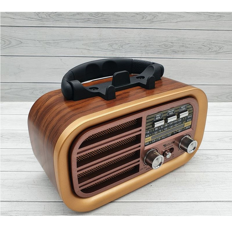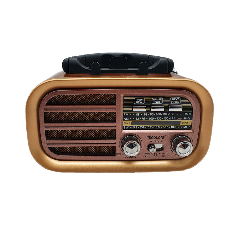 با وجود پیشرفت تکنولوژی باز هم رادیو طرفداران خاص خودش را دارد. رادیو RX-BT638 رادیویی زیبا و جذاب با امکانات پیشرفته امروزی با طرح نوستالژیک خود به صورت رادیو های قدیمی، یادآور خاطرات بسیار شیرینی است. در این دستگاه نمایشگر تنظیم ایستگاه رادیویی مانند نسل رادیوهای قدیمی طراحی شده است . این رادیو اسپیکر گیرنده امواج رادیویی FM، AM و SW می باشد و قابلیت پشتیبانی از USB و TF CARD را داشته و همچنین دارای قابلیت اتصال بلوتوث می باشد. انرژی این رادیو به 2 صورت قابل تامین است:باتری داخلی قابل شارژ و یا 2 عدد باتری قلمی بزرگ.این رادیو در همه جا میتواند همراه خوبی برای شما باشد. این رادیو با داشتن آنتن تلسکوپی بر روی خود به راحتی میتواند در هر مکانی به ایستگاه رادیویی دلخواه شما متصل و شما را با پخش رادیو لذت خاصی دهد.همچنین وجود پایه نگهدارنده موبایل و دسته حمل بر روی بدنه ،حمل این رادیو را راحت کرده است.