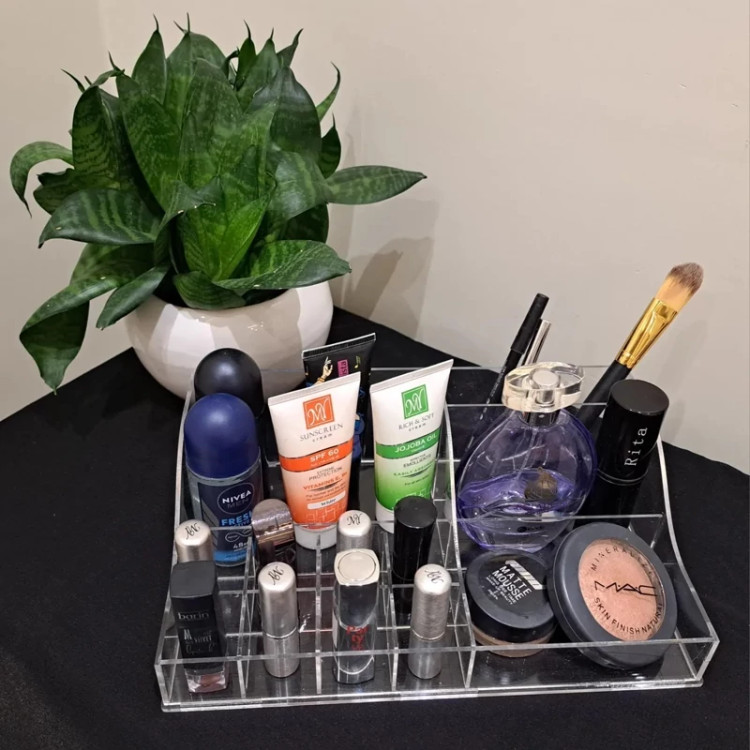 یکی از معضلات بانوان هنگام استفاده از میز آرایش بهم ریختگی و شلوغی میز می باشد.این عامل باعث می شود گاهی اوقات وسائل کوچک آرایشی گم شده یا پیدا کردن آنها زمان بر باشد.همچنین به استفاده ی بهینه از فضای میز آرایش کمک بسیاری میکند.این محصول به دلیل فضاهای زیادی که دارد به تفکیک چیدمان لوازم آرایشی (کرم،مداد،رژلب و..) کمک میکند.