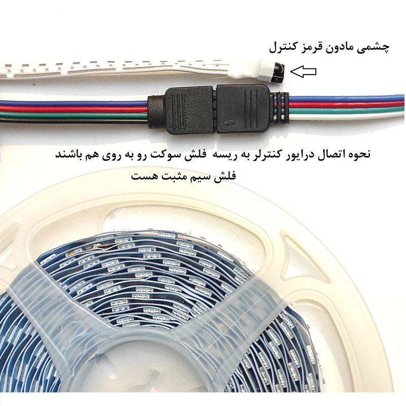 ریسه استریپ لایت دارای کنترل و ۳ رنگ اصلی (سبز،قرمز،ابی) و16 رنگ متفاوت و ترکیبی دیگه است .با استفاده از کنترل از راه دور میتونید رنگ مورد نظرتون رو انتخاب کنید.از ریسه نواری RGB می توان برای نور مخفی و تزیین سقف با اپن آشپزخانه استفاده کرد.