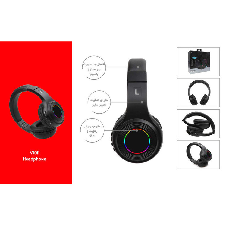 هدفون بلوتوثی مدل VJ011 محصولی بسیار خوشساخت و کارآمد است. علاوهبر پخش موسیقی، این هدفون به میکروفون مجهز است که قابلیت مکالمه را برایتان فراهم میکند. این امر باعث میشود که بتوانید درصورت نیاز، با موبایل خود مکالمه برقرار کرده و امنیت بیشتری برای گوشیتان فراهم کنید. این مدل بهواسطهی بلوتوث، به موبایل یا هر پخشکنندهی موسیقی مجهز به این تکنولوژی متصل میشود. همچنین میتوانید به واسطهی جک 3.5میلیمتریاش، آن را به تمامی دستگاههای الکترونیکی متصل کرده و از امکانات آن بهرهمند شوید. کیفیت و قدرت صدایی که از آن پخش میشود بسیار خوب است و شما را به دنیای موسیقی میبرد. طراحی آن بسیار جذاب و معقول و جدید است؛ یعنی همانطور که به زیبایی این هدفون اهمیت داده شده است، راحتی و آرگونومیک بودن محصول نیز در آن مثال زدنی است. همچنین این محصول بسیار انعطافپذیر است. تنوع رنگی زیادی برای این مدل در نظر گرفته شده است تا کاربران بنا به سلیقهی خود، قادر به انتخاب باشند. این هدفون مجهز به یک باتری لیتیومیون داخلی است که بهسرعت شارژ میشود و بنا به کاربریاش میتواند تا 9 ساعت کار کند. برای شارژ آن، باید از کابل Micro USB استفاده کنید که در جعبه موجود است. مدت زمان لازم برای شارژ این هدفون 2.5 ساعت است و دارای باطری قدرتمند 500 میلی آمپر است. برد بلوتوثی قوی باعث شده به راحتی از آن در منزل استفاده کنید و کارهای دیگرتان را انجام دهید و یا با خیال راحت با اتصال به تلویزیون های هوشمنده بر روی مبل نشسته و به تماشای تلویزیون و یا بازی با کنسول های بازی بپردازید.