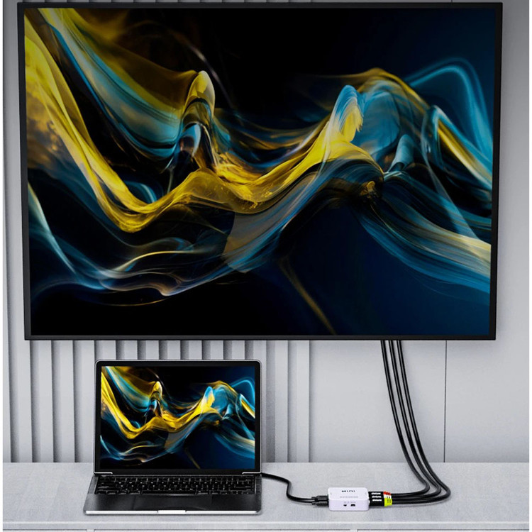 تبدیل پورت VGA کامپیوتر، لپ تاپ و یا دستگاه DVR/NVR به پورت AV تلویزیون، که از مهمترین استفاده های این تبدیل VGA به AV اتصال دستگاه DVR یا NVR دارای خروجی وی جی ای (VGA) به تلویزیون معمولی و یا ویدیو پرژکتور قدیمی دارای پورت ویدیویی (RCA) می باشد. این دستگاه مبدل VGA دارای ۱ پورت خروجی VGA مانیتور نیز هست که علاوه بر خروجی برای تلویزیون یک خروجی هم به مانیتور در صورت نیاز داشته باشید. یعنی دارای دو خروجی تصویر است به طور مثال در صورت اتصال گرافیک کامپیوتر به این مبدل می توان یک خروجی به تلوزیون و یک خروجی به مانیتور همان سیستم داشته باشید.