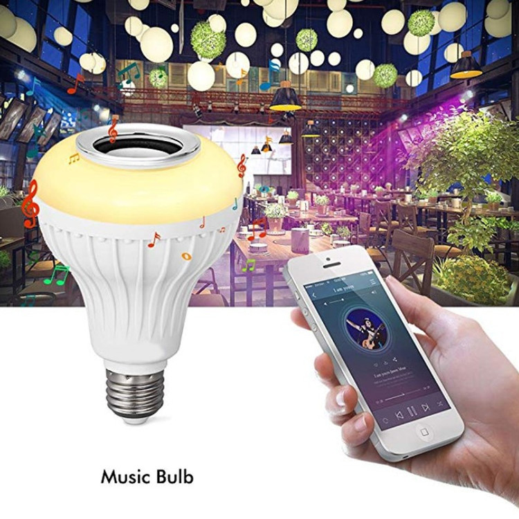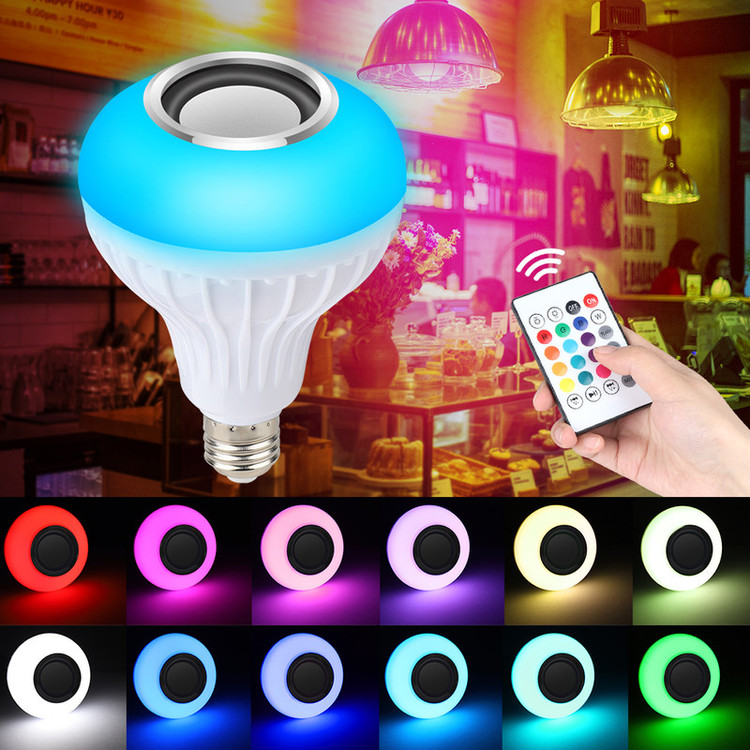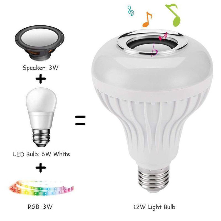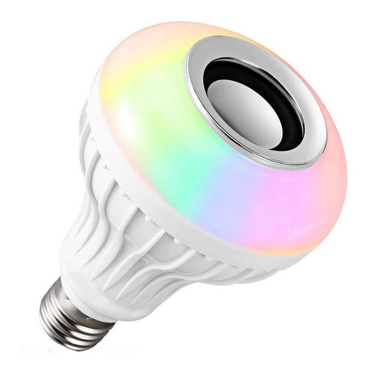 این لامپ هوشمند که ترکیب یک لامپ LED رنگی و یک اسپیکر بلوتوثی بیسیم میباشد یکی از جذاب ترین و زیباترین و نیز پرفروش ترین لامپ های تزئینی میباشد. امکان اتصال با موبایل به صورت بیسیم برای پخش موسیقی و نیز امکان تغییر رنگ نور به انواع رنگ ها با کمک ریموت در این لامپ وجود دارد. میتوانید مانند یک لامپ معمولی آن را به لوستر و یا آباژور متصل کنید. به کمک ریموت میتوانید آن را خاموش و روشن کنید و یا مود آن را به حالت رقص نور و یا نور ثابت رنگی یا سفید تغییر دهید. علاوه بر این امکان کم و زیاد کردن نور نیز در ریموت وجود دارد. برد ریموت نیز زیاد و بیشتر از 10 متر میباشد. اسپیکر بلوتوثی تعبیه شده در آن نیز از کیفیت بالایی برخوردار است و میتوانید با کیفیت عالی موسیقی مورد علاقه خود را پخش کنید.