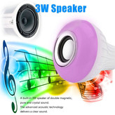 متاسفانه این کالا در حال حاضر موجود نیست. میتوانید از طریق لیست بالای صفحه، از محصولات مشابه این کالا دیدن نمایید.لامپ هوشمند و اسپیکر بلوتوث مدل MUSIC BULB، یک محصول چند منظوره برای پخش موزیک و تامین روشنایی می باشد که همانند لامپ به سرپیچ های معمولی یا E27 متصل می شود و از طریق گوشی یا دستگاه های دارای بلوتوث می توان به آن متصل شد و موزیک یا فایل صوتی مورد نظر را پخش کرد و از طریق ریموت کنترل همراه محصول می توان رنگ نور، شدت نور، میزان صدا و ... را تنظیم کرد.این لامپ دارای 13 رنگ نور و 4 حالت نوع روشنایی و یا رقص نور (FLASH ، STROBE ، FADE ، SMOOTH) می باشد که از طریق ریموت قابل کنترل است. این محصول از ورژن بلوتوث 3.0 بهره می برد و برد آن 10 متر می باشد.